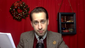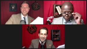 For its 2020 virtual pandemic season production, ABT bluntly begins the Zoom Age show (yes, it is a live Zoom show with cast members in those familiar onscreen rectangles) by stating that this year’s production is obviously challenged. For those who’ve seen the production on years past, there’s no hiding the lack of a meticulously re-created vintage sound-booth set. No vintage costumes. No milk, cookies and Santa in the lobby post-show.